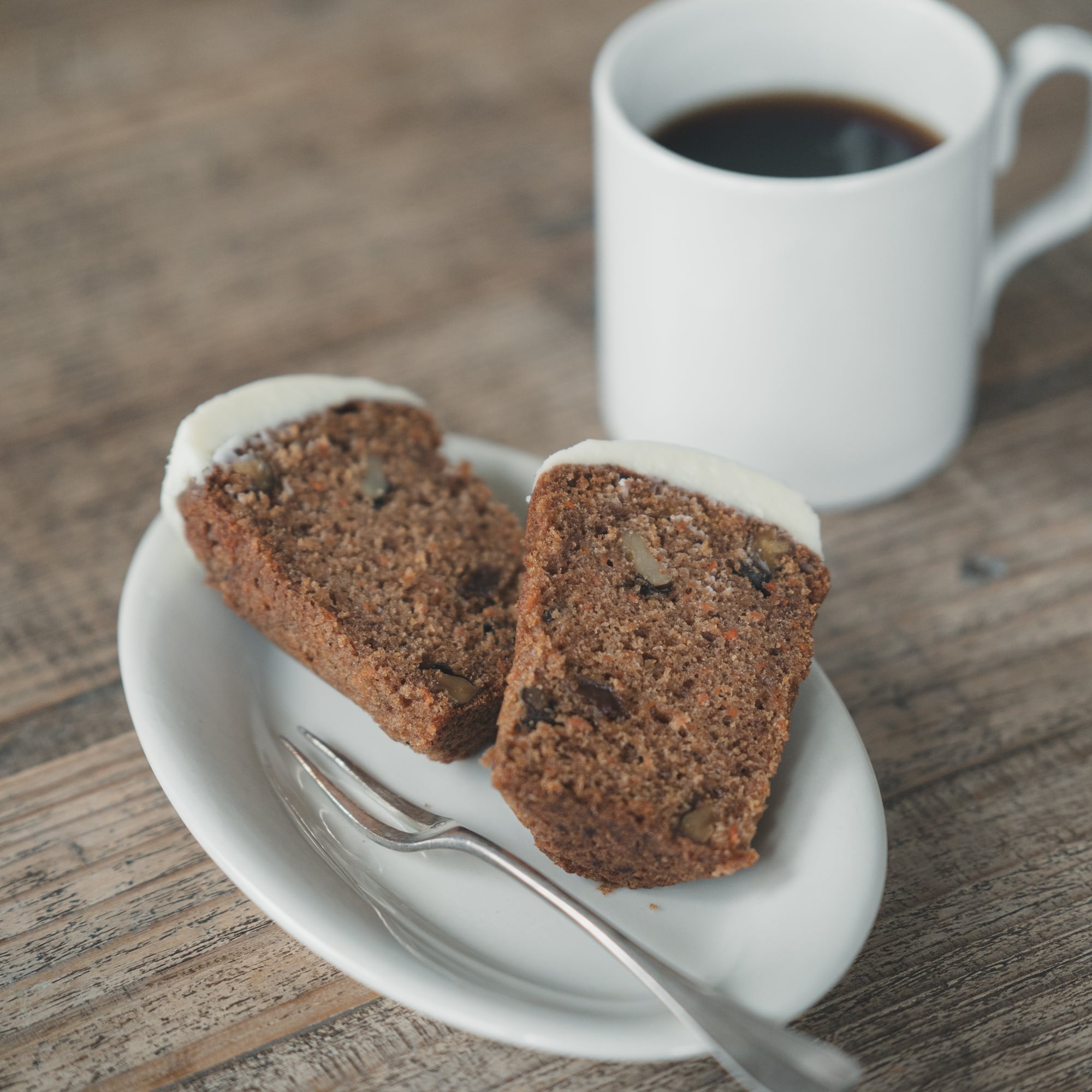多めの人参とオイルでふわりと焼き上げた生地の中から時折レーズンの甘さが広がり、クルミが香ばしく弾けます。