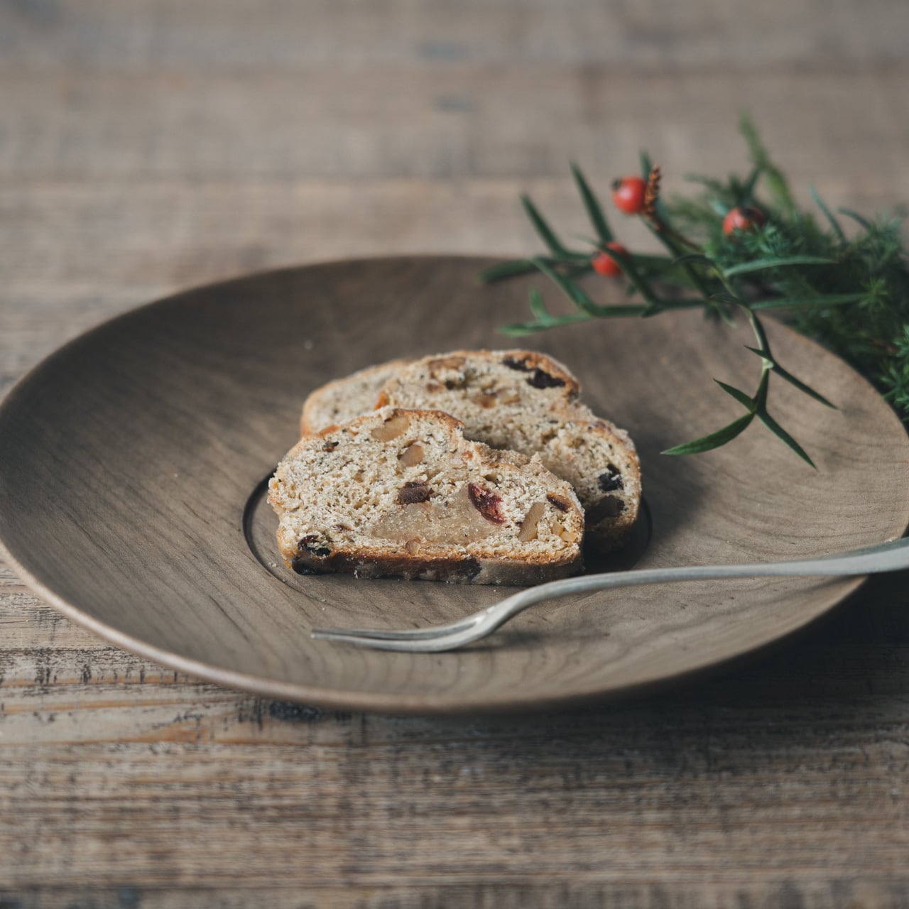 ■原材料| 小麦粉、強力粉、アーモンドパウダー、素焚糖、無塩バター、クルミ、アーモンド、オレンジピール、レーズン、チェリー砂糖漬、水飴、ドライアップル、パイン砂糖漬、牛乳、紅茶、ラム酒、イースト、卵、塩