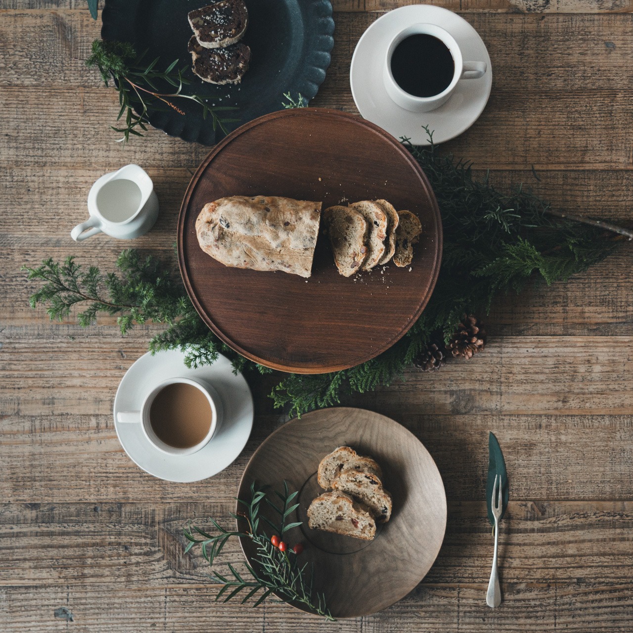 深い色のシュトーレンに、星々が煌めくようなイメージで。