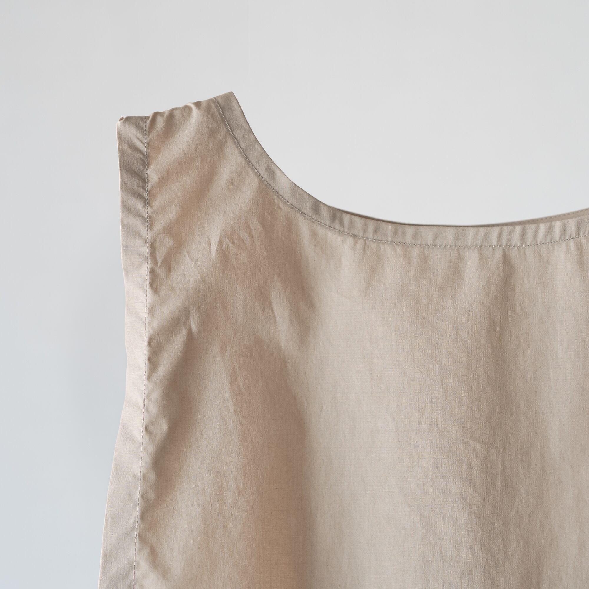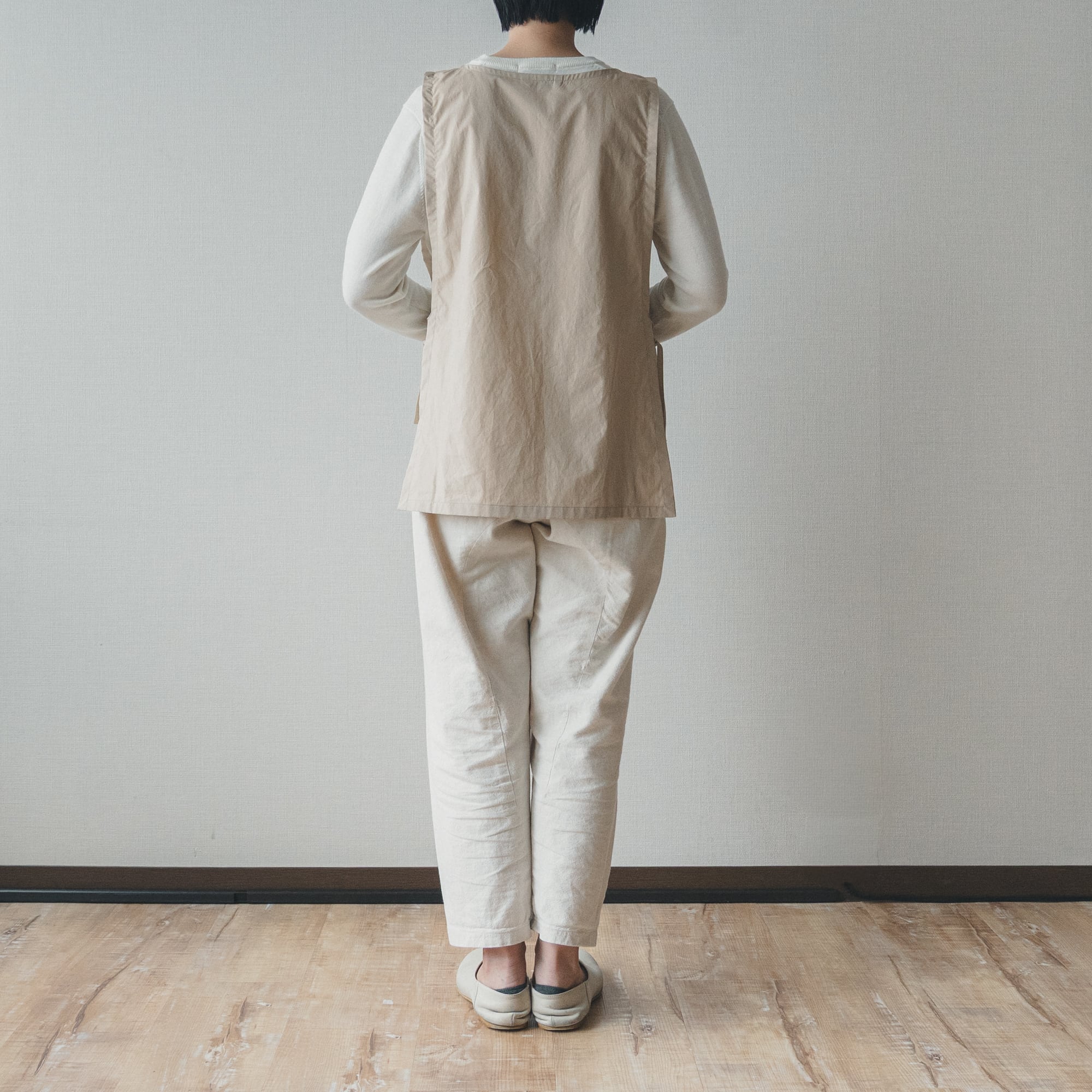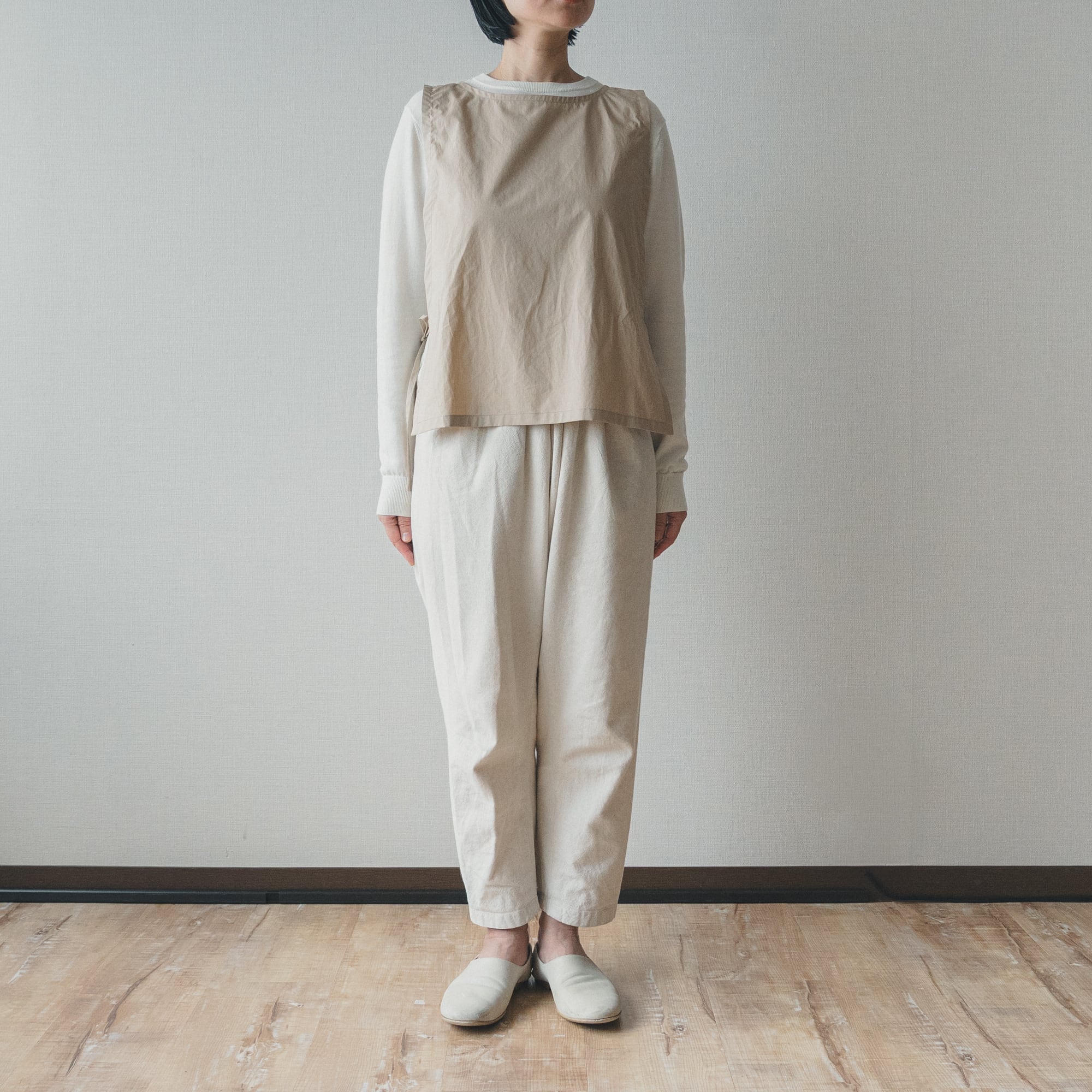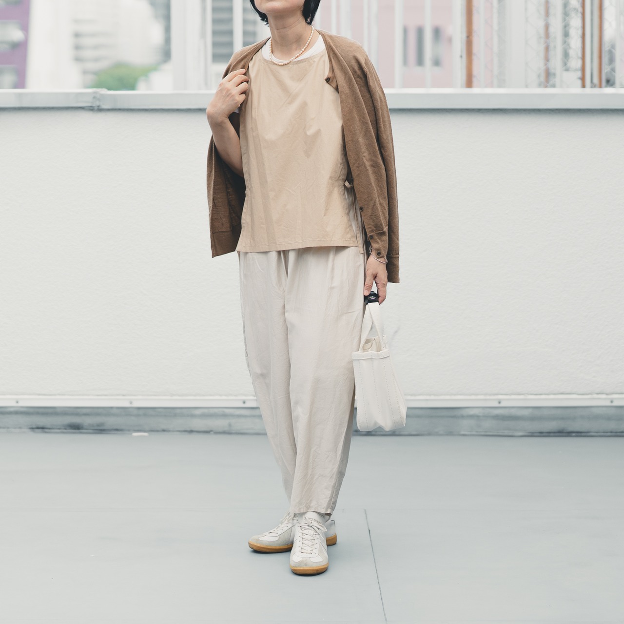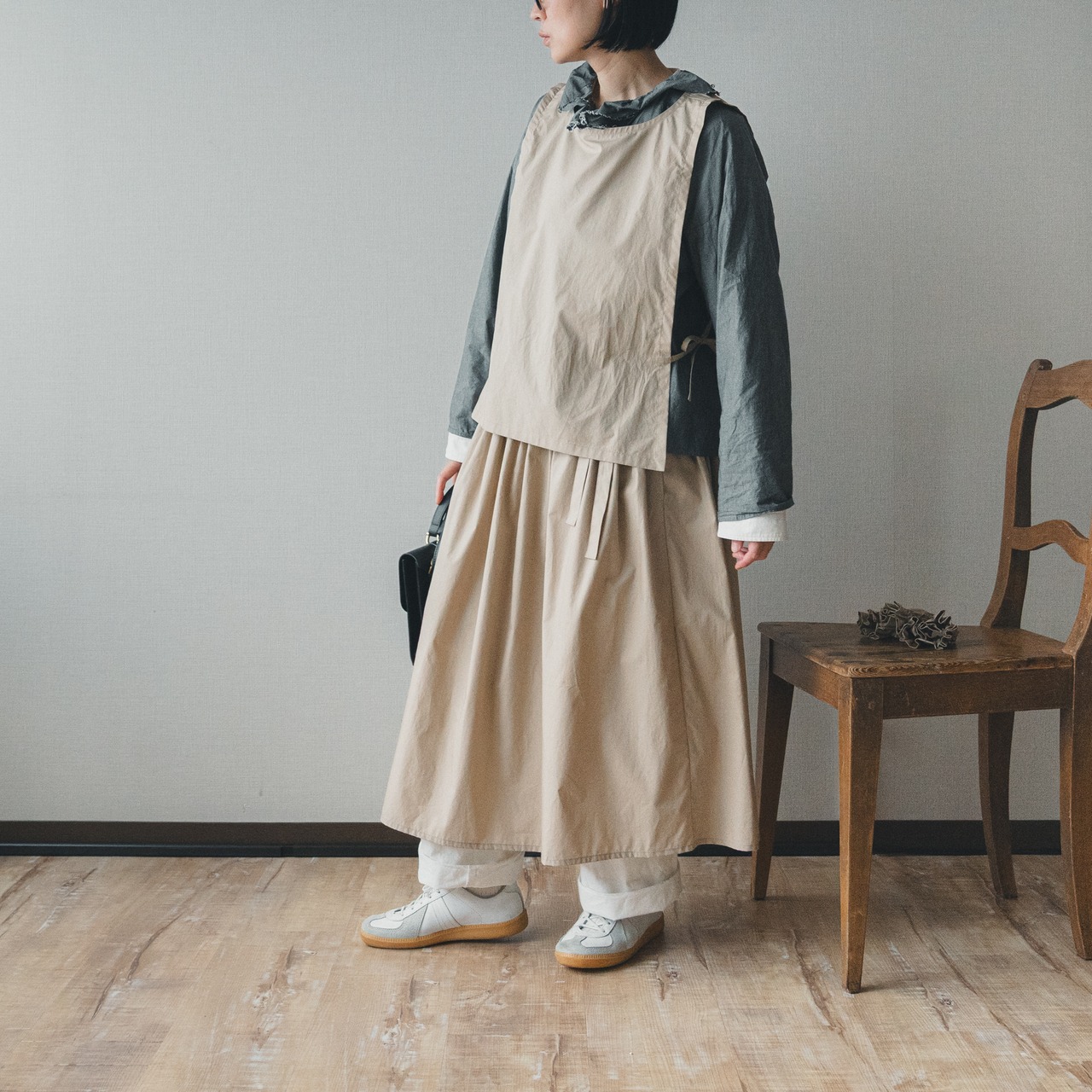 共生地のエプロンとセットアップで着られるようにと作りましたが、単品でも使いやすい一枚となりました。