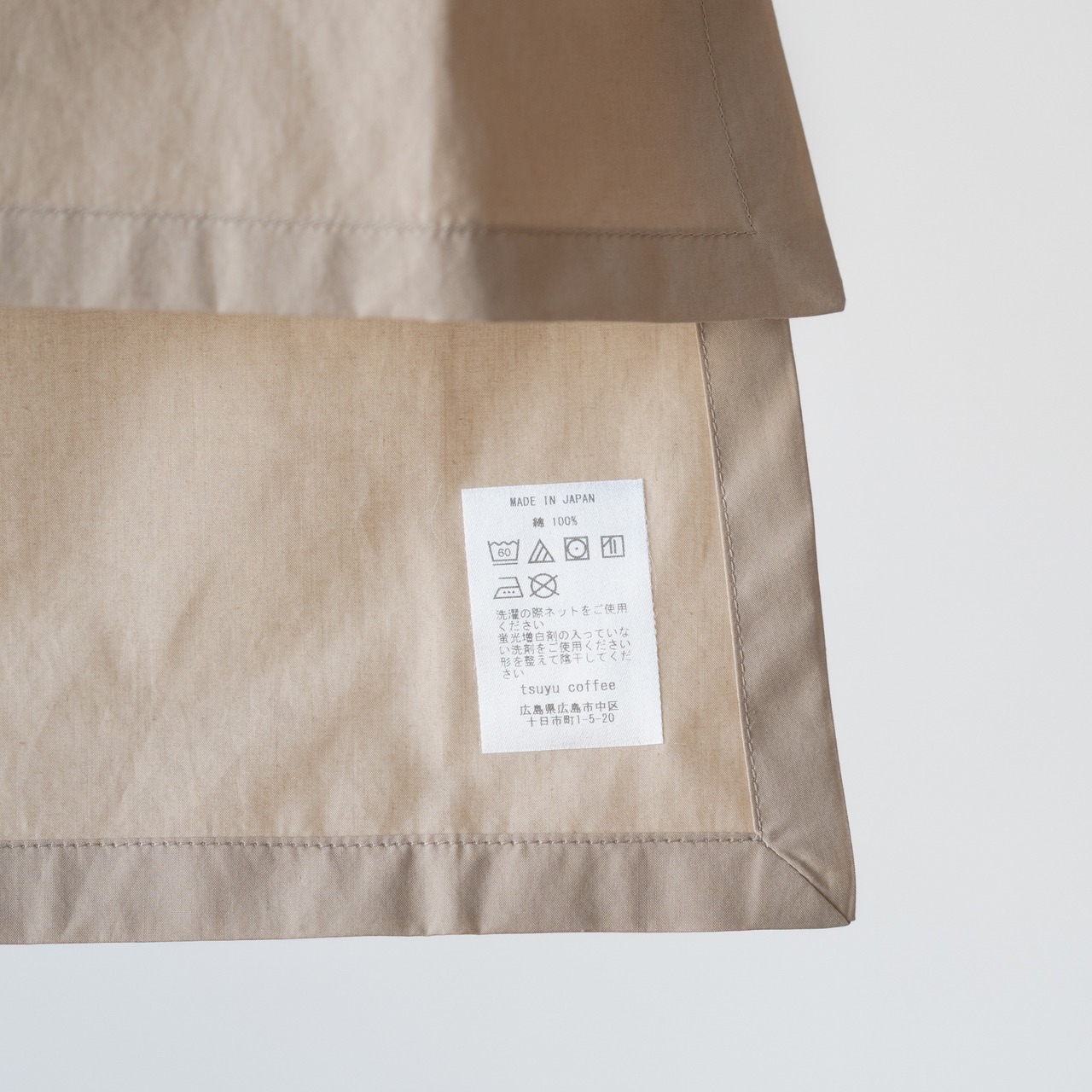 ※非常に高密度であるため、撥水加工は施してありませんが水を弾きやすいのでエプロン下のお洋服が濡れることはほぼありません。また、粉物が付くとはたいても取れにくいですが、濡らした布で拭いていただくとすぐに取れます。