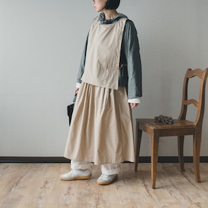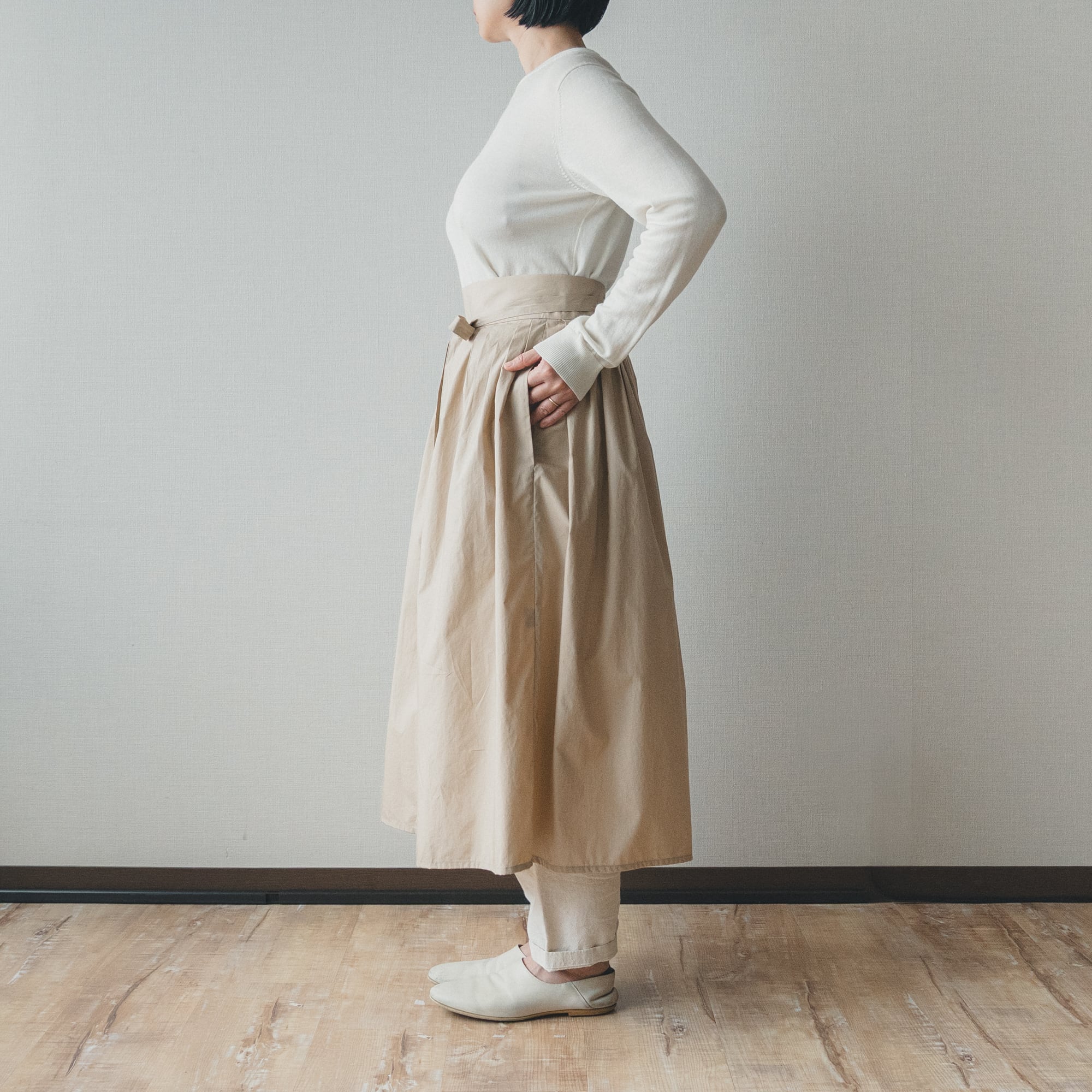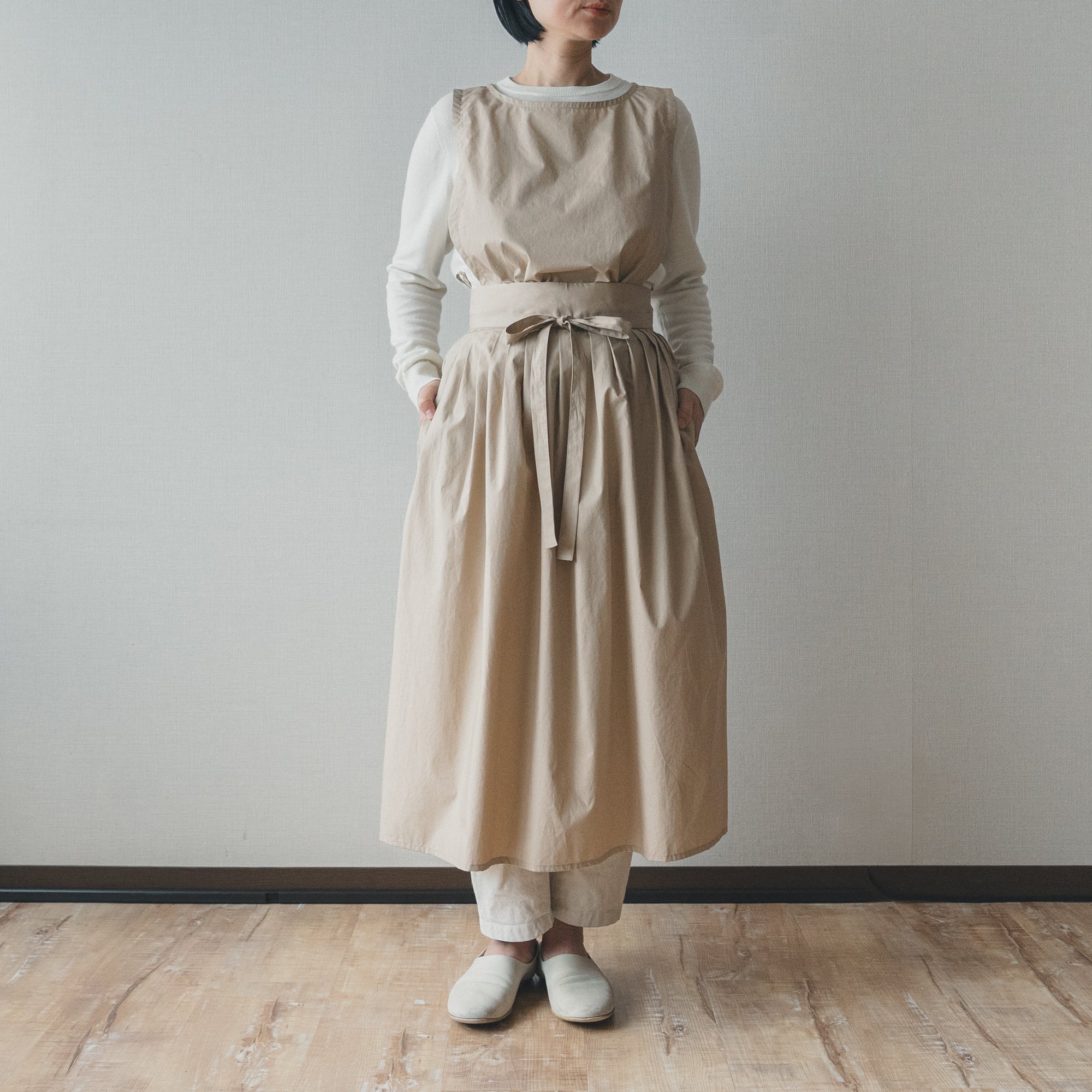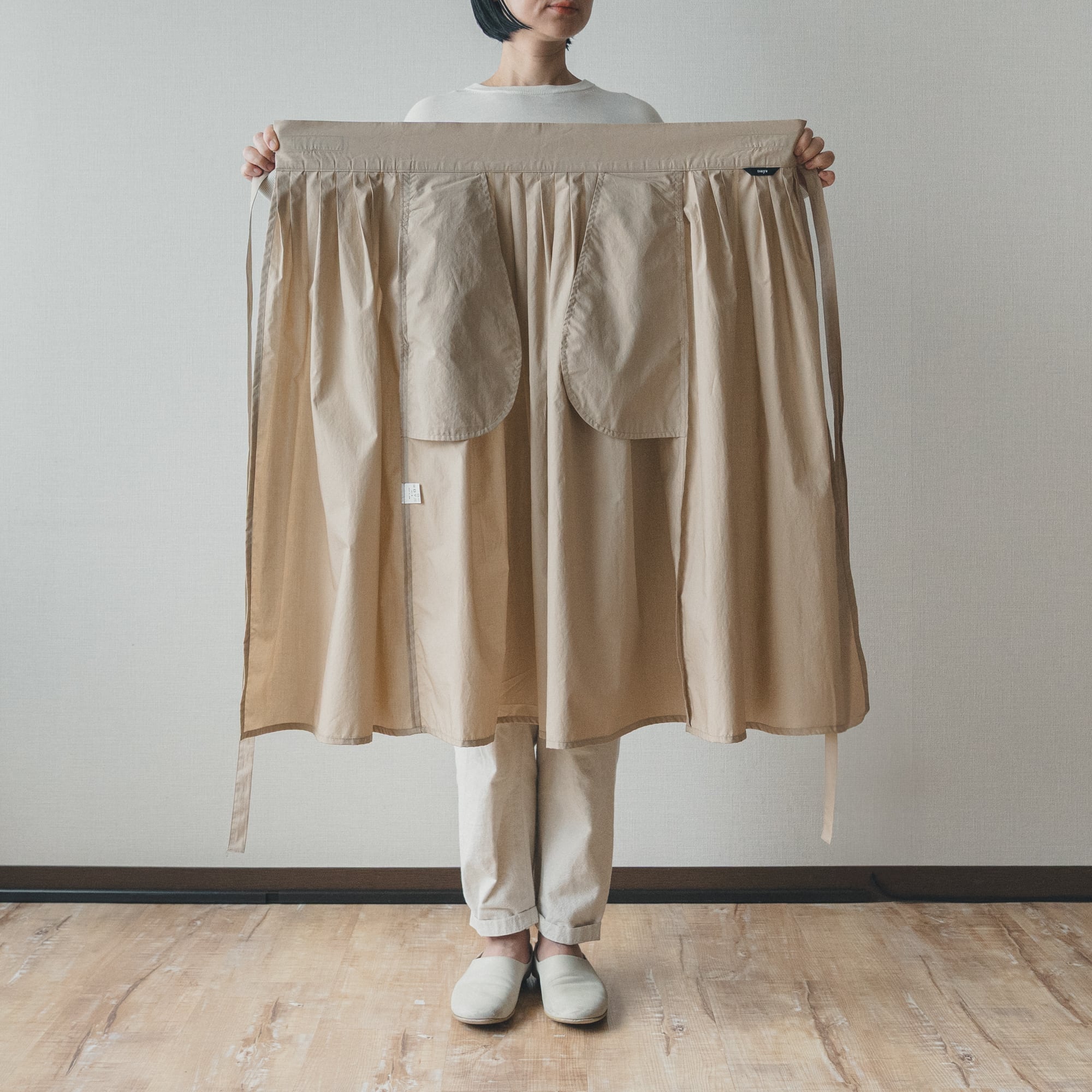 エプロンとしての着丈は長めですが、屈んだり段差を上る際も、裾を踏んだり躓くことのない長さを追求しました。