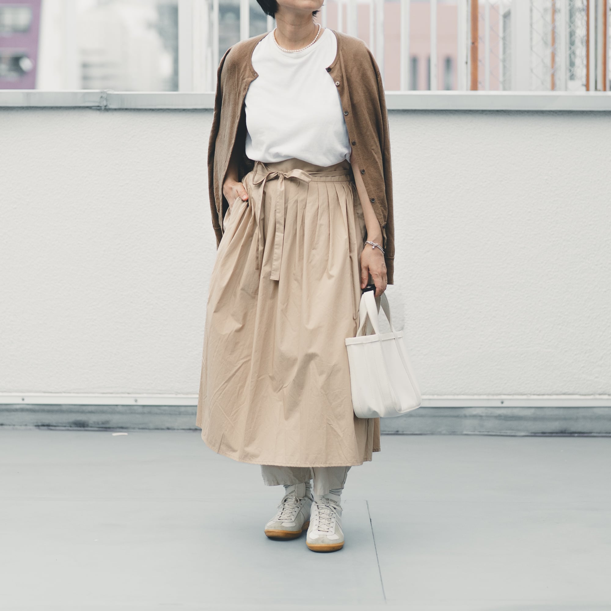 ギャザーのふわっと可愛らしい広がりよりも、タックで抑えながらエプロンが広がるので落ち着いた印象です。
