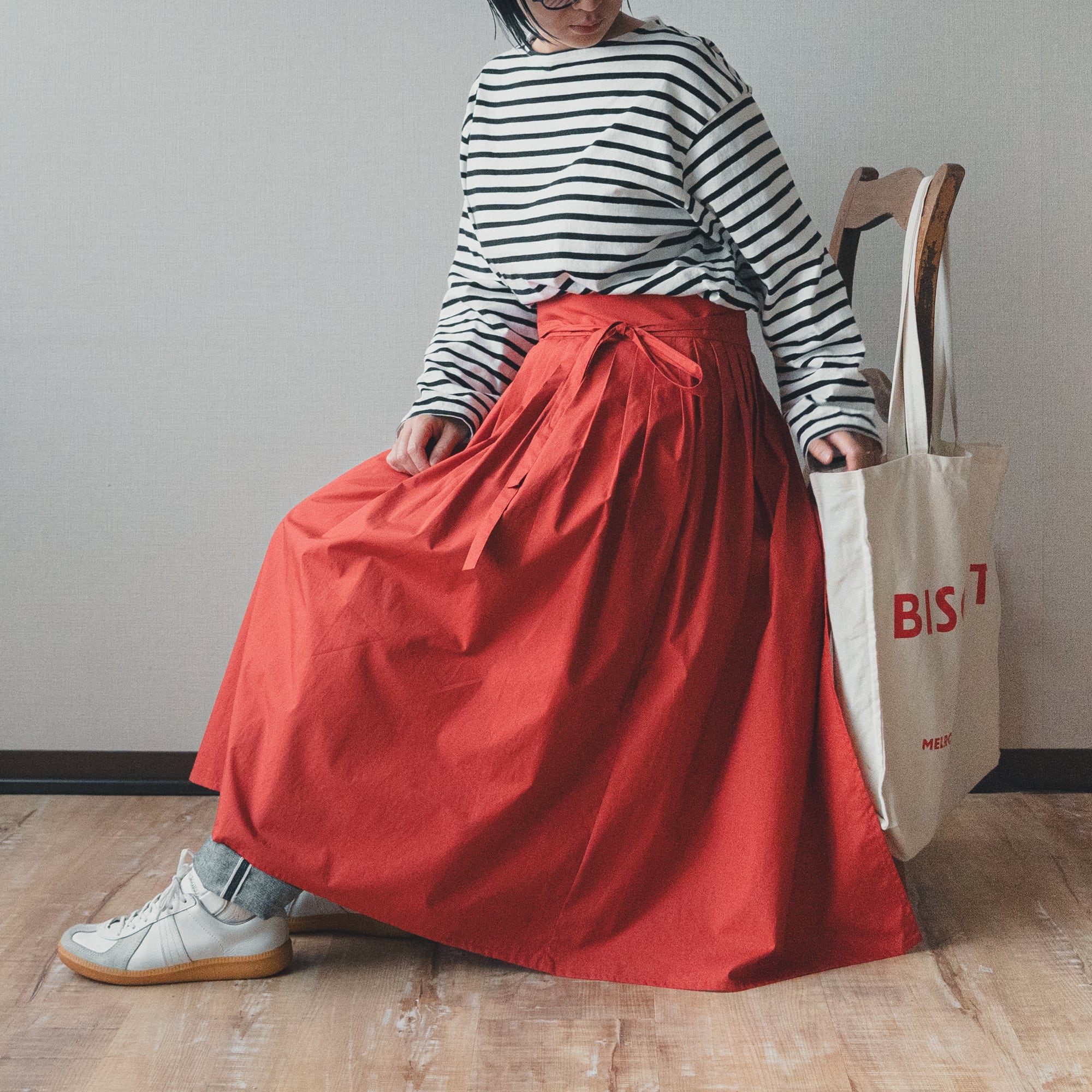 ギャザーのふわっと可愛らしい広がりよりも、タックで抑えながらエプロンが広がるので落ち着いた印象です。
