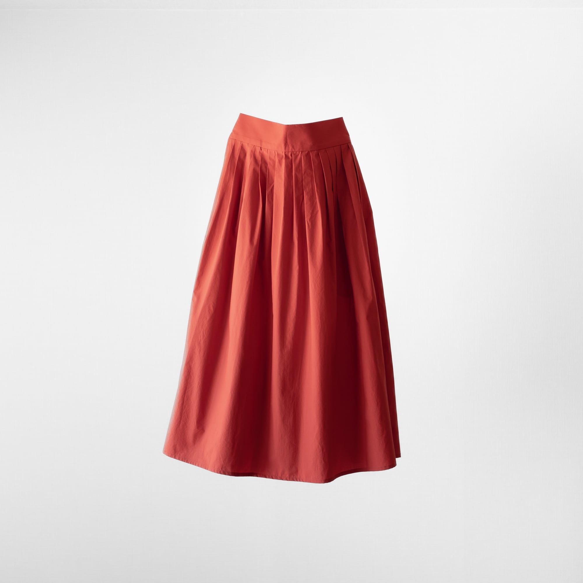膨らみやすい腰回りはタックで寄せてスッキリと。