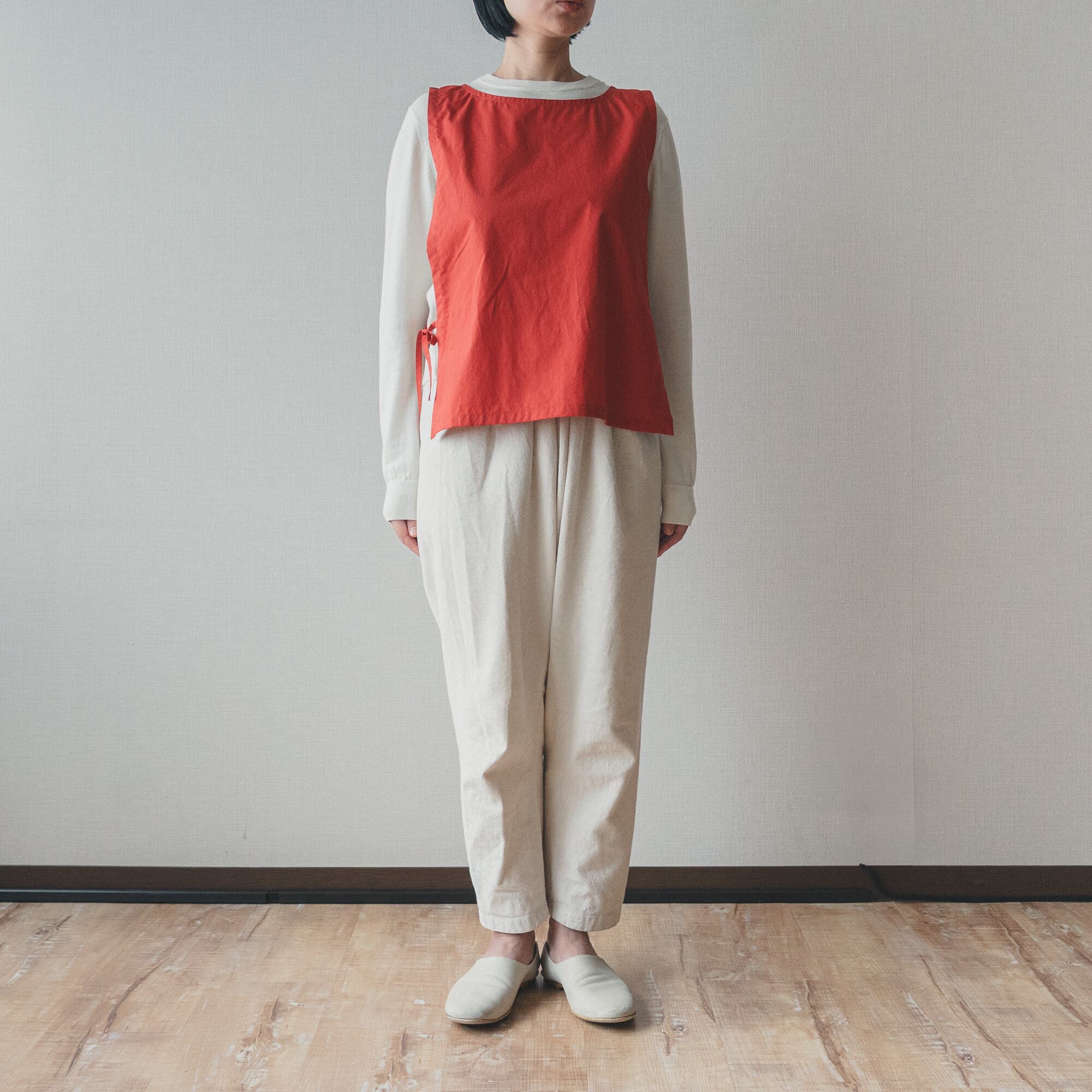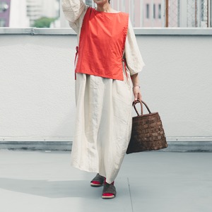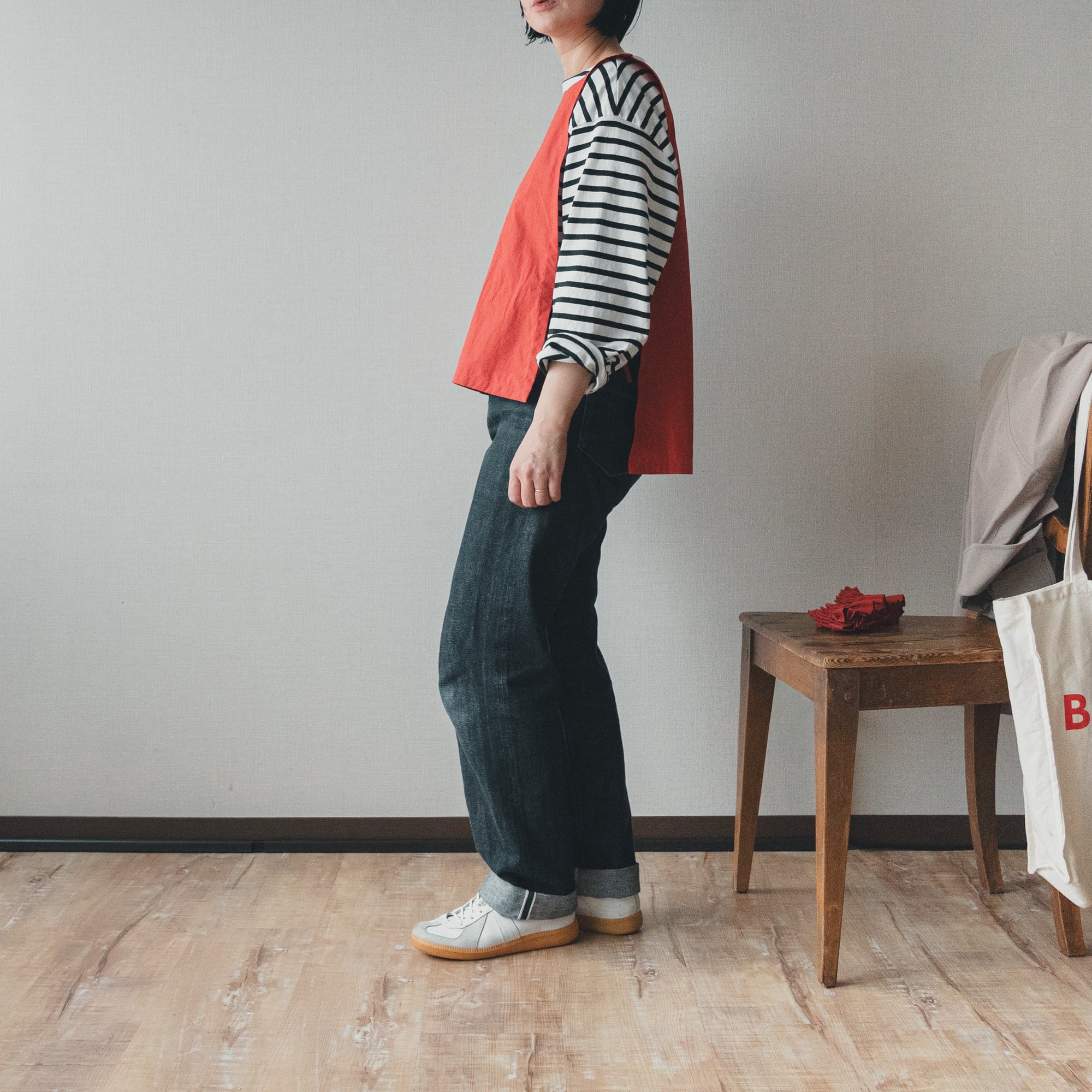 共生地のエプロンとセットアップで着られるようにと作りましたが、単品でも使いやすい一枚となりました。