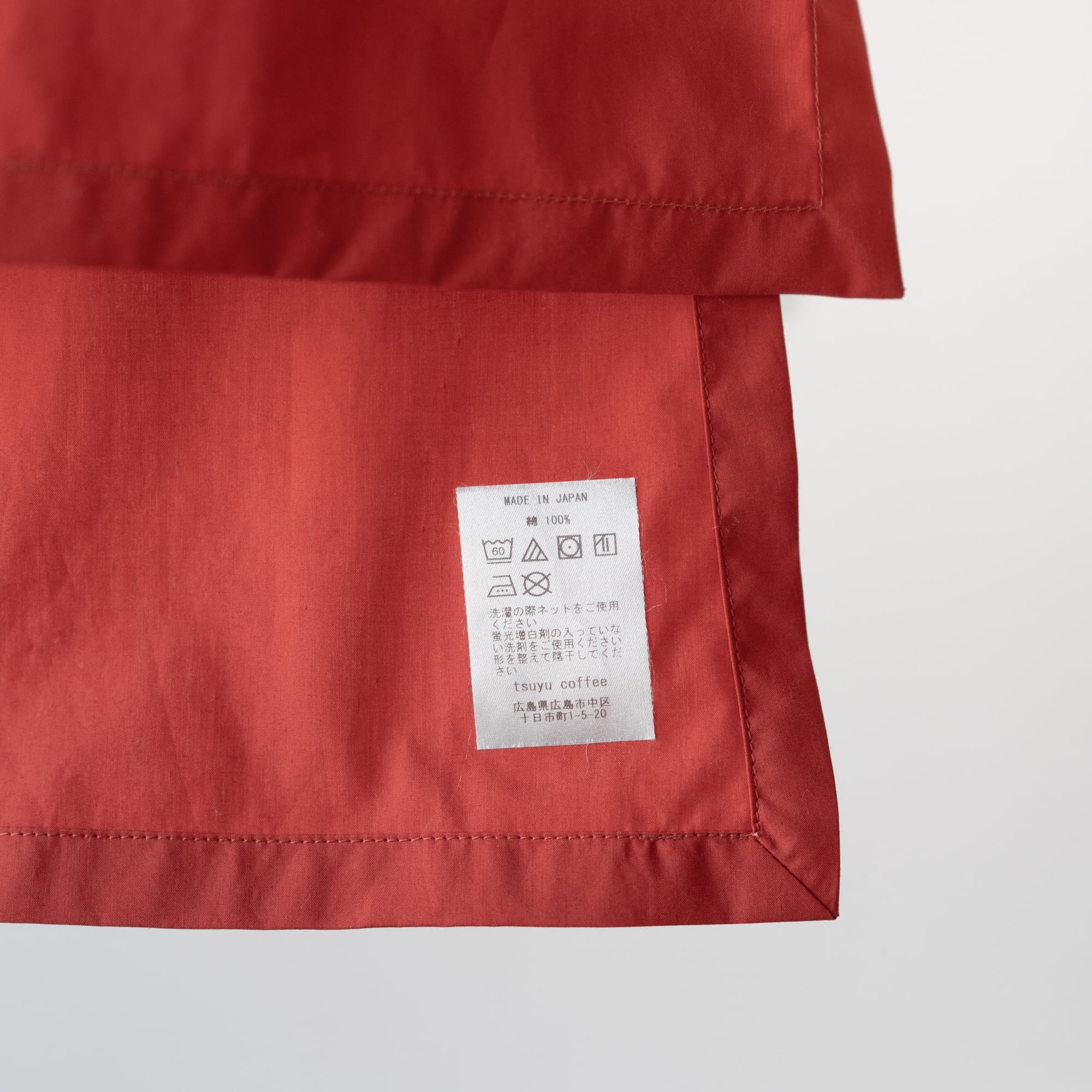 ※非常に高密度であるため、撥水加工は施してありませんが水を弾きやすいのでエプロン下のお洋服が濡れることはほぼありません。また、粉物が付くとはたいても取れにくいですが、濡らした布で拭いていただくとすぐに取れます。