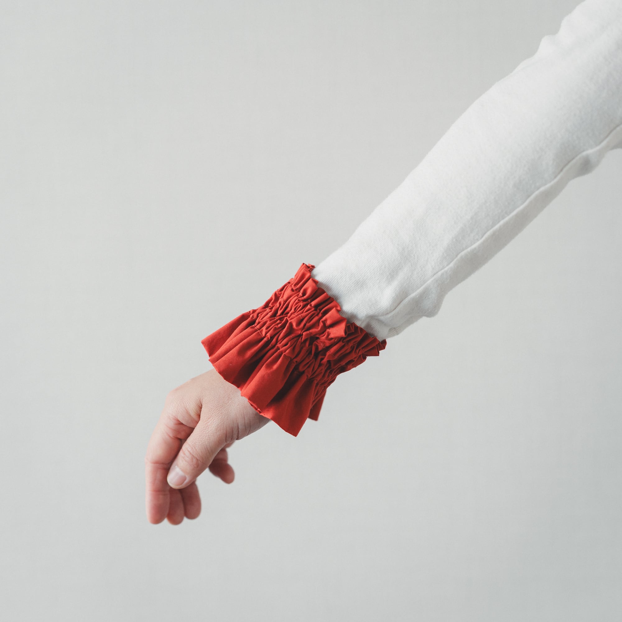 イベント事など着脱の多い日には、手首に付けたままにしてその都度肘まで押し上げれば完了するので、お袖を折り上げるより初動も早いです。
